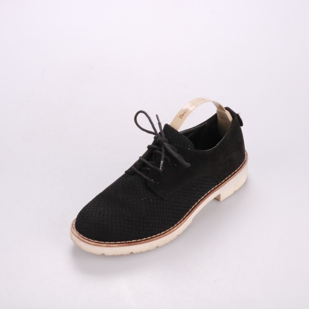 Мужские туфли Graceland в чёрном цвете с фактурным текстилем и шнуровкой. Подойдут для офиса и повседневных образов в тёплую погоду и межсезонье. Светлая подошва с протектором даёт устойчивость и меньше скользит на плитке и асфальте.
