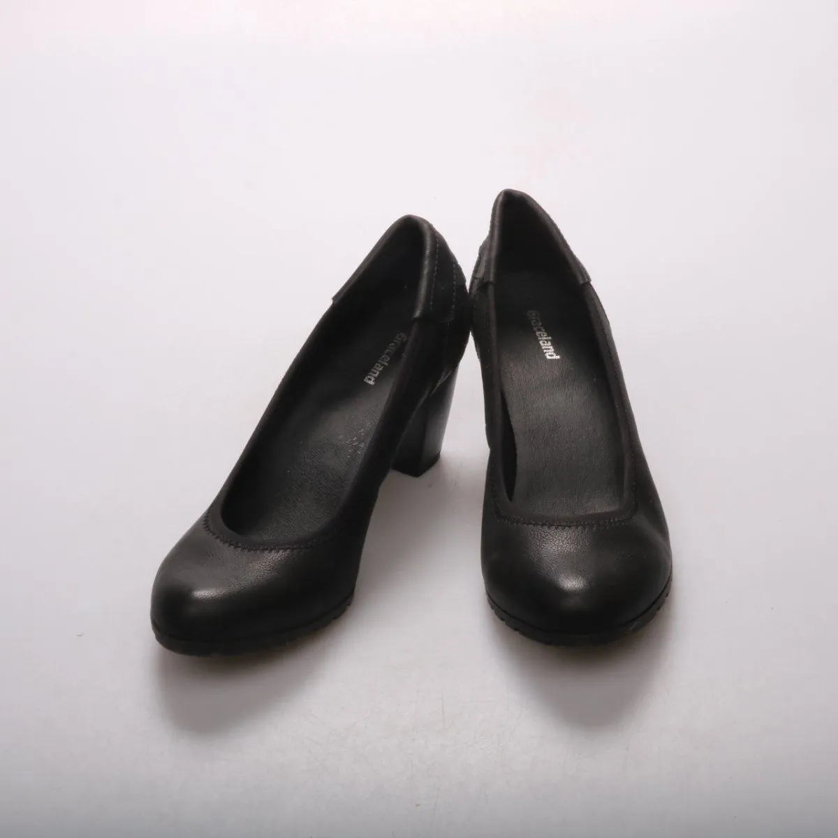 Женские туфли Graceland на устойчивом каблуке с закрытым носком, выполнены в классическом черном цвете. Подойдут для офиса, учебы и повседневных выходов. Практичная подошва с протектором меньше скользит на улице.