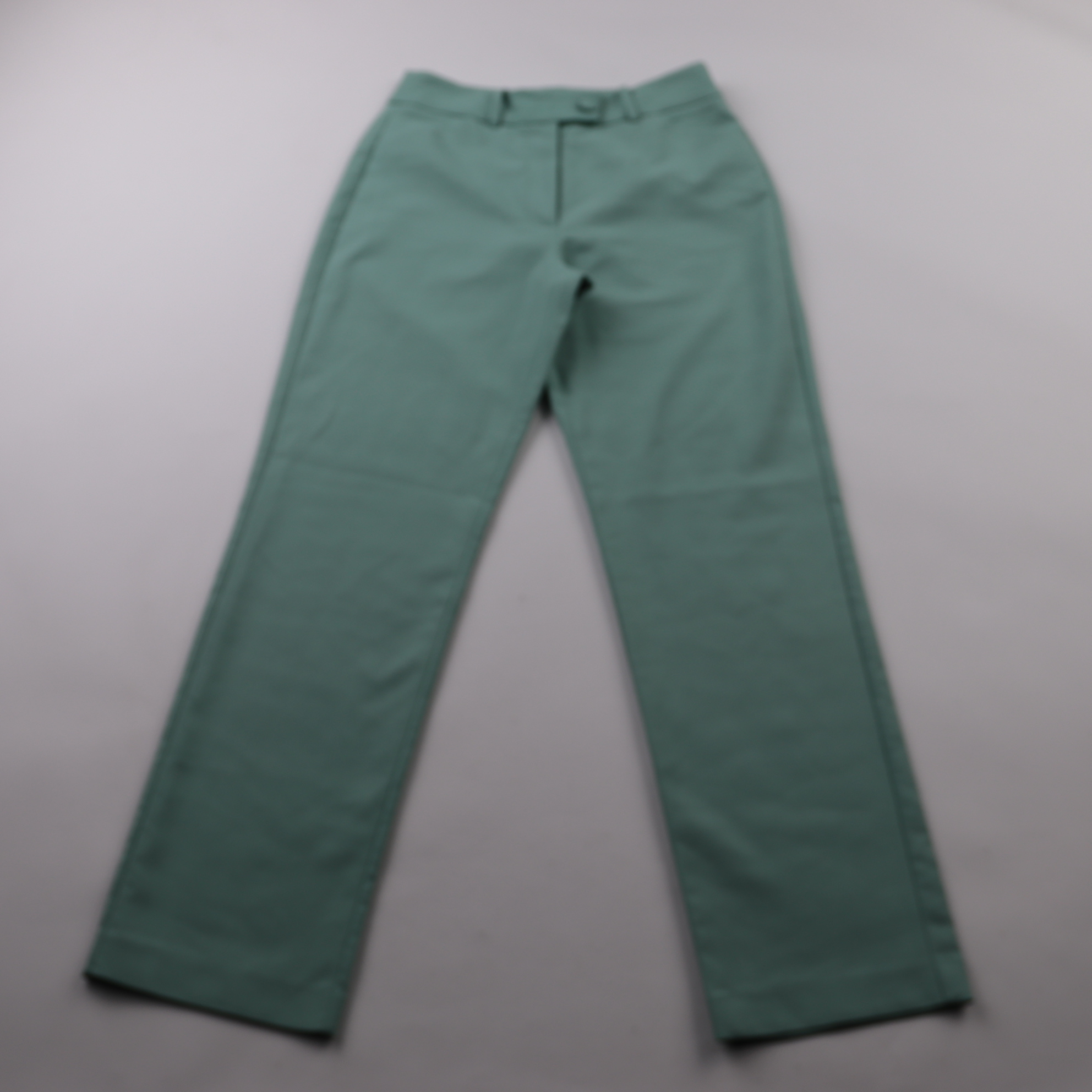 Брюки CKS прямого кроя в спокойном мятно-зелёном оттенке, застёжка на молнию и пуговицу. Подойдут для офиса и на каждый день, легко сочетаются с базовыми рубашками и джемперами. Ткань с добавлением эластана чуть тянется и комфортна в носке.