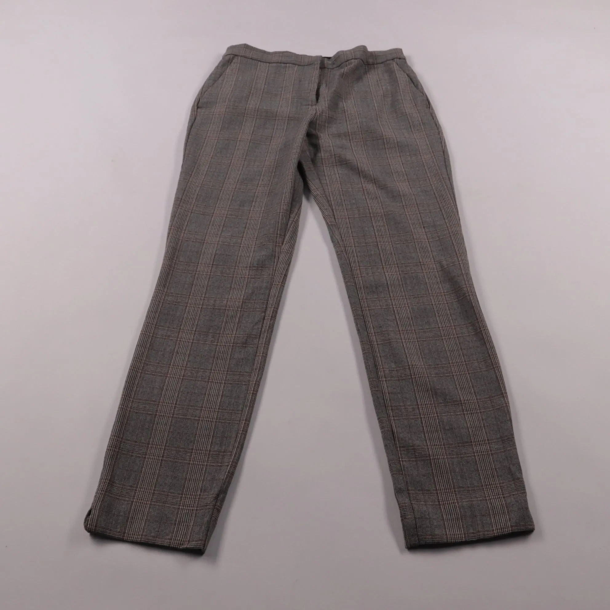 Женские брюки Zara в серую клетку, прямого кроя с эластичным поясом. Подойдут для офиса и повседневных образов с рубашкой или свитером. Практичный плюс — ткань не слишком мнётся и удобно садится по талии.