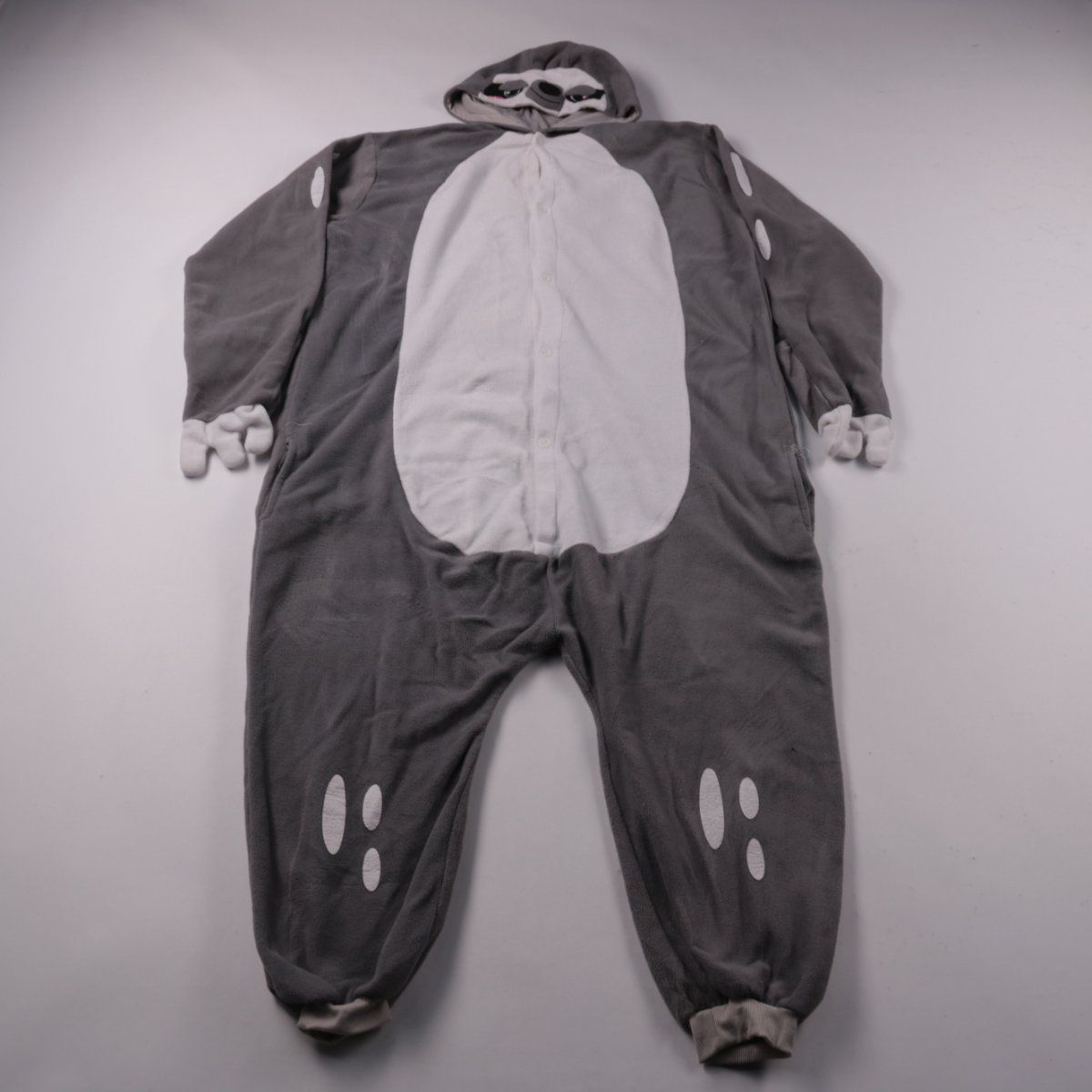 Мягкий флисовый комбинезон-кигуруми Spooktacular Creations серого цвета с капюшоном и застёжкой на пуговицы. Подойдёт для дома, сна и тематических вечеринок. Тёплый и удобный, легко надевается как цельный комплект.