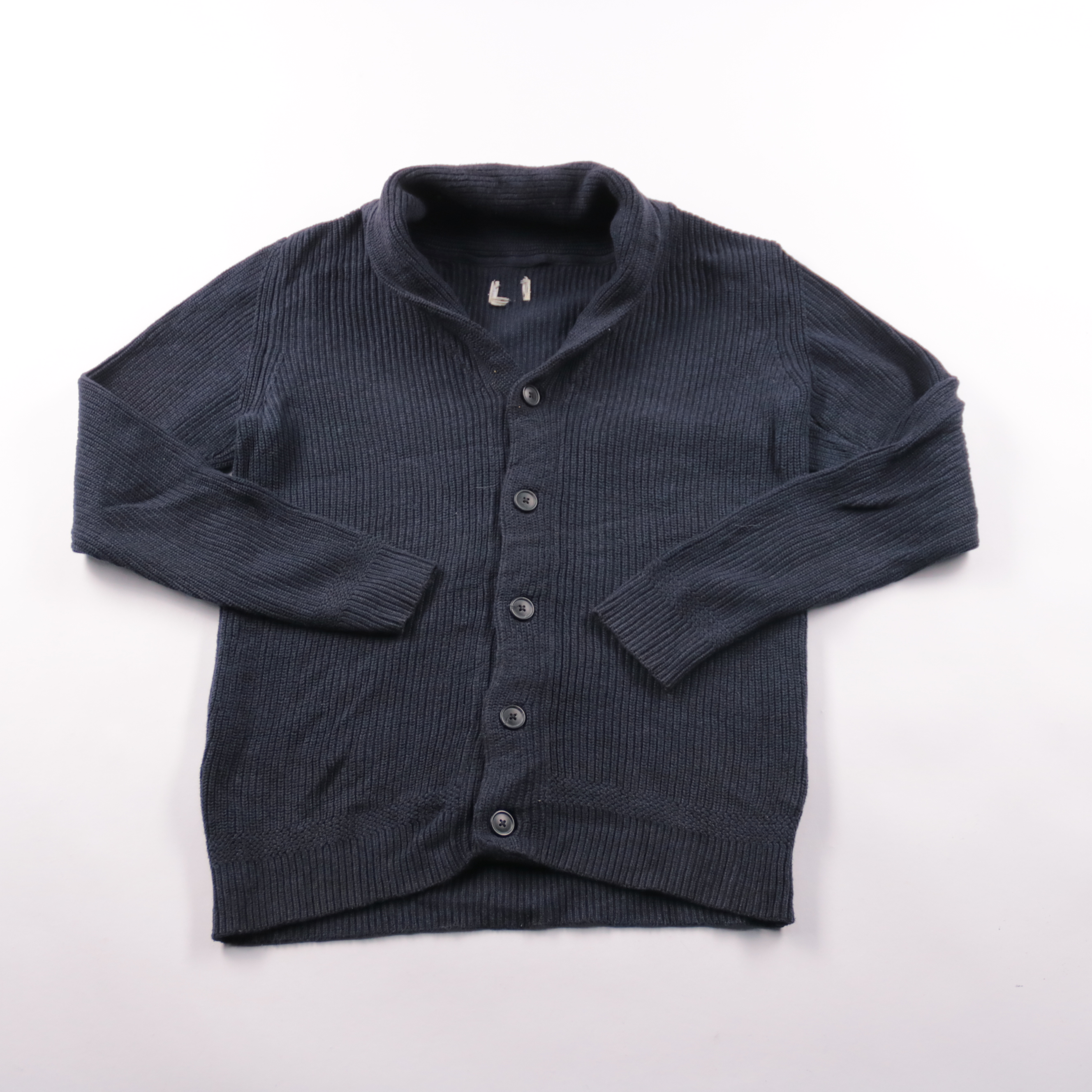 Вязаный кардиган LI темно-синего цвета в рубчик, на пуговицах и с воротником-стойкой. Подойдет для повседневных образов в прохладную погоду, удобно носить как второй слой поверх футболки или рубашки. Практичный вариант: легко сочетается с джинсами и бр...
