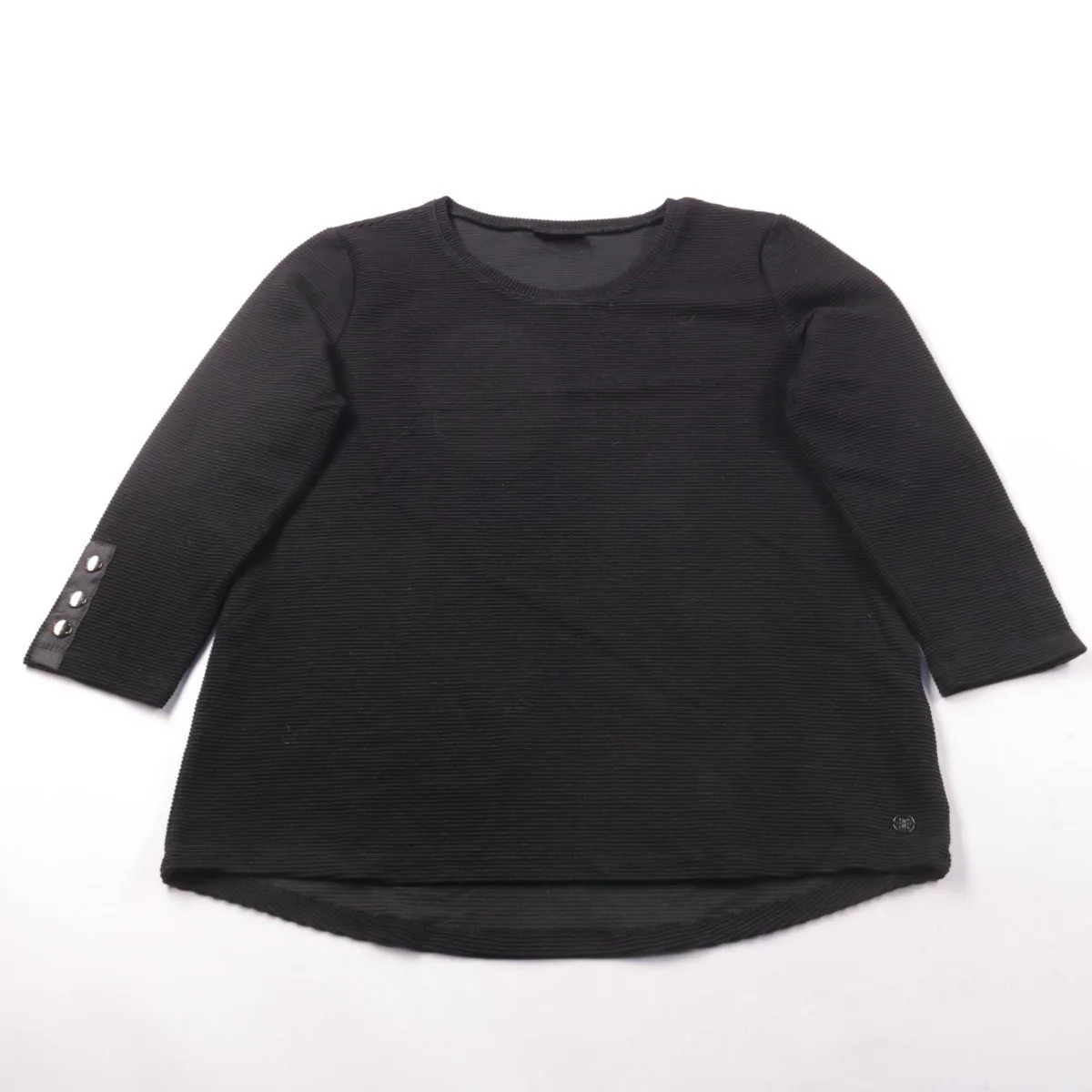 Женский джемпер Canda Premium чёрного цвета с фактурной вязкой и круглым вырезом. Подойдёт для повседневных и офисных образов в межсезонье и прохладные дни. Практичный плюс — базовый цвет легко сочетать с брюками, джинсами и юбками.