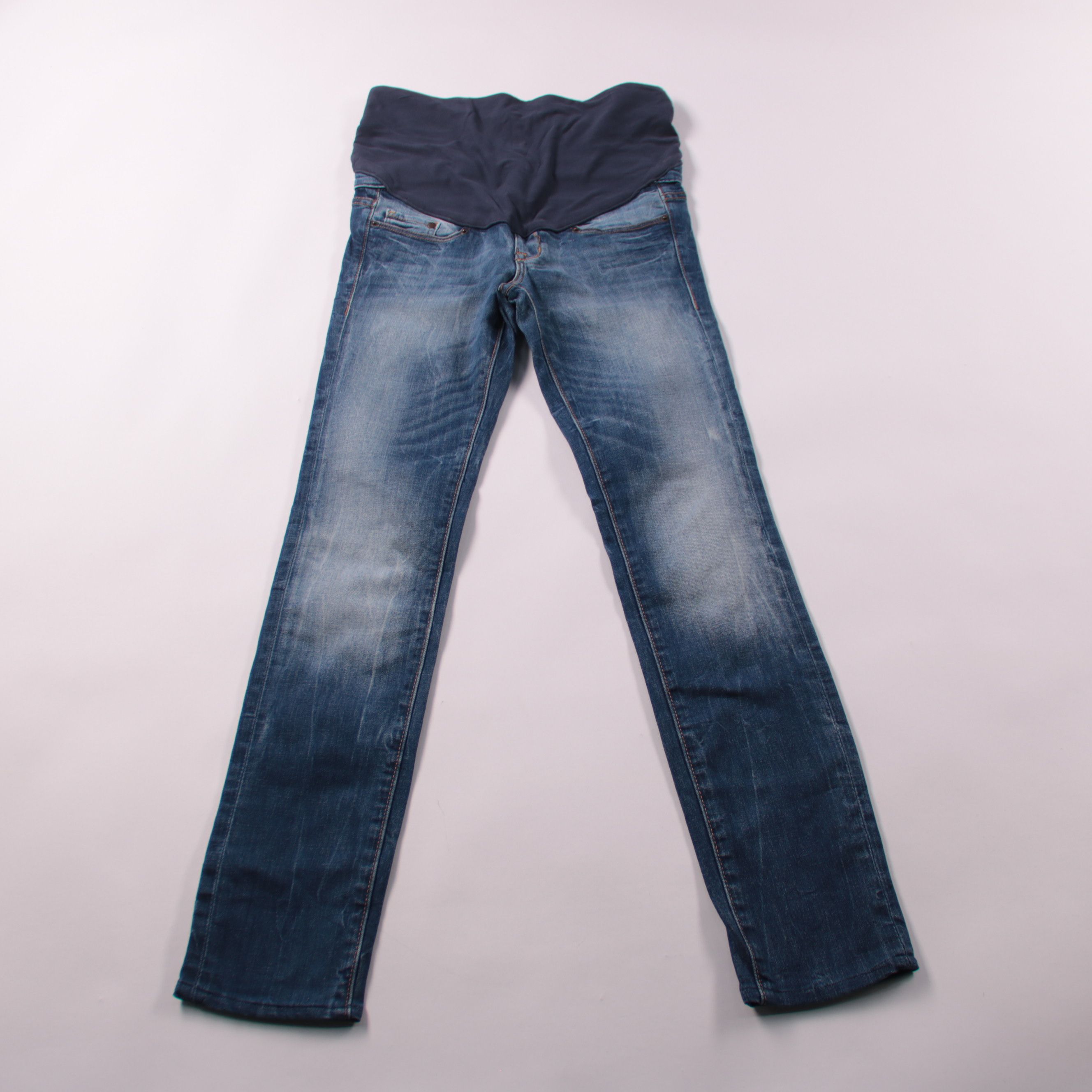 Женские джинсы из денима с трикотажной вставкой на поясе, удобно сидят и не давят. Подойдут для повседневной носки и на период беременности. Практичны тем, что легко сочетаются с футболками, свитерами и кедами.