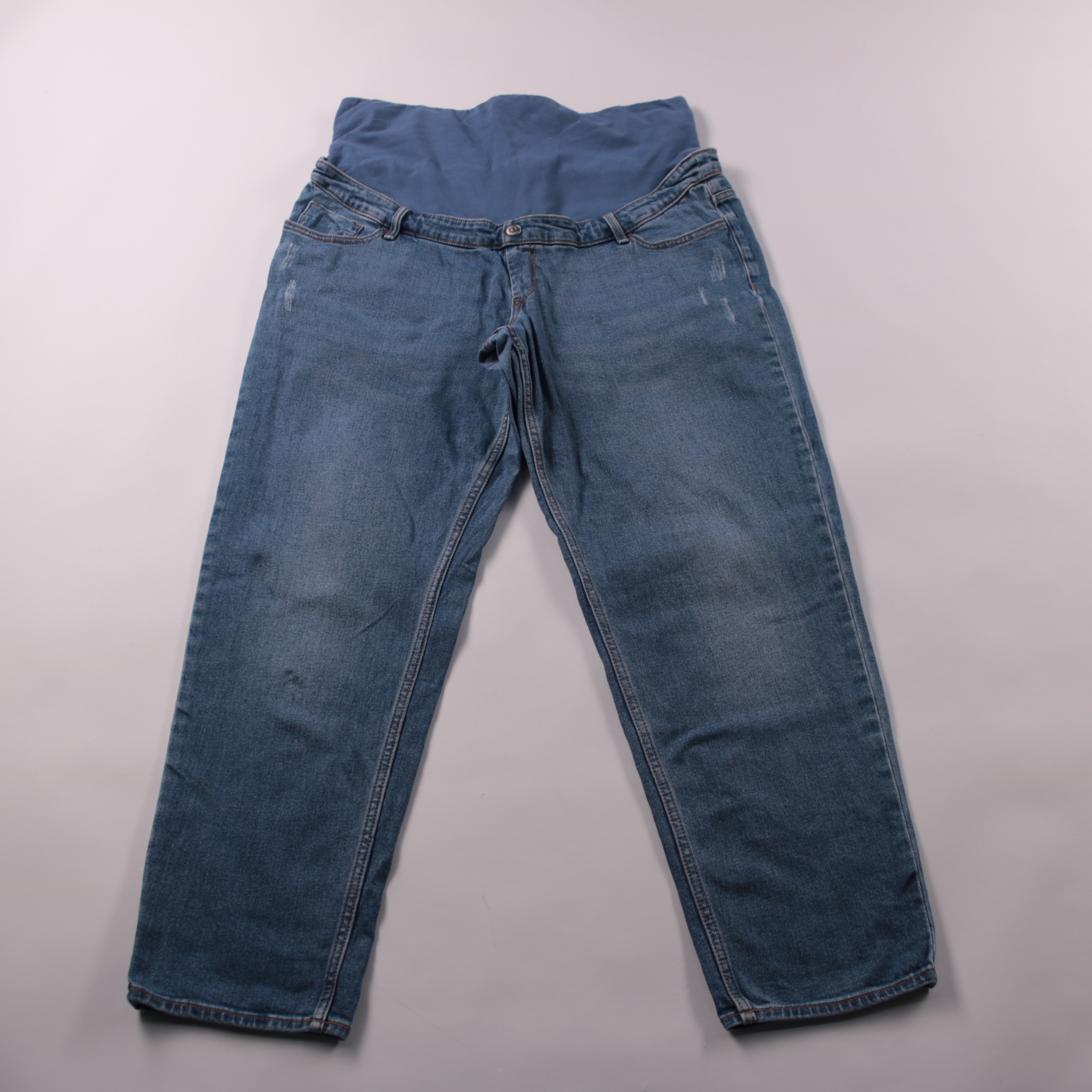 Женские джинсы Kiabi для будущих мам с высокой трикотажной вставкой на живот. Подойдут для повседневной носки в беременность, хорошо сочетаются с футболками и свитерами. Практичный плюс — эластичный пояс без давления, удобно сидят и не стесняют движения.
