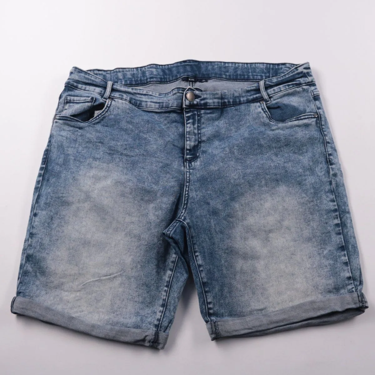 Джинсовые шорты Kiabi из денима голубого цвета с эффектом варки и подворотами по низу. Подойдут для летних прогулок и повседневных образов с футболками и кедами. Плотный деним хорошо держит форму и удобен в носке.