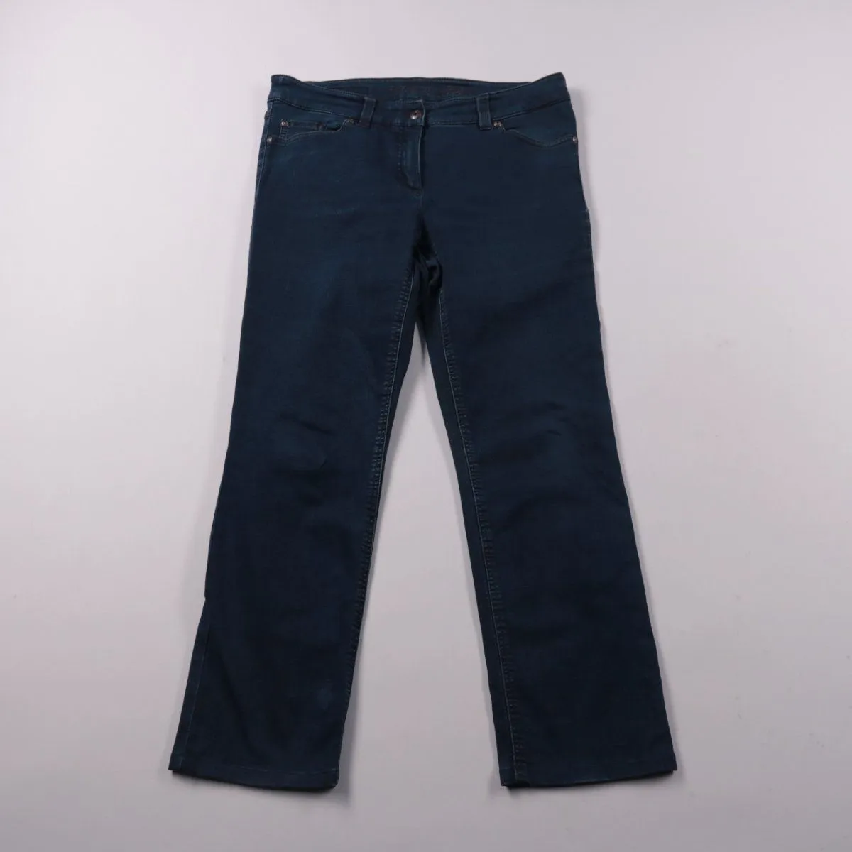 Женские джинсы Gerry Weber из тёмно-синего денима, классическая посадка и прямые штанины. Подойдут для повседневной носки и офиса с рубашкой или свитером. Плотная ткань хорошо держит форму и не требует сложного ухода.