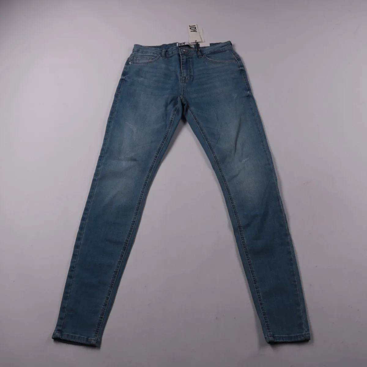 Женские джинсы JDY из синего денима, узкая модель с классической посадкой и пятью карманами. Подойдут для повседневных образов с кедами или ботинками в любой сезон. Ткань с добавлением эластана лучше тянется и комфортнее в носке.