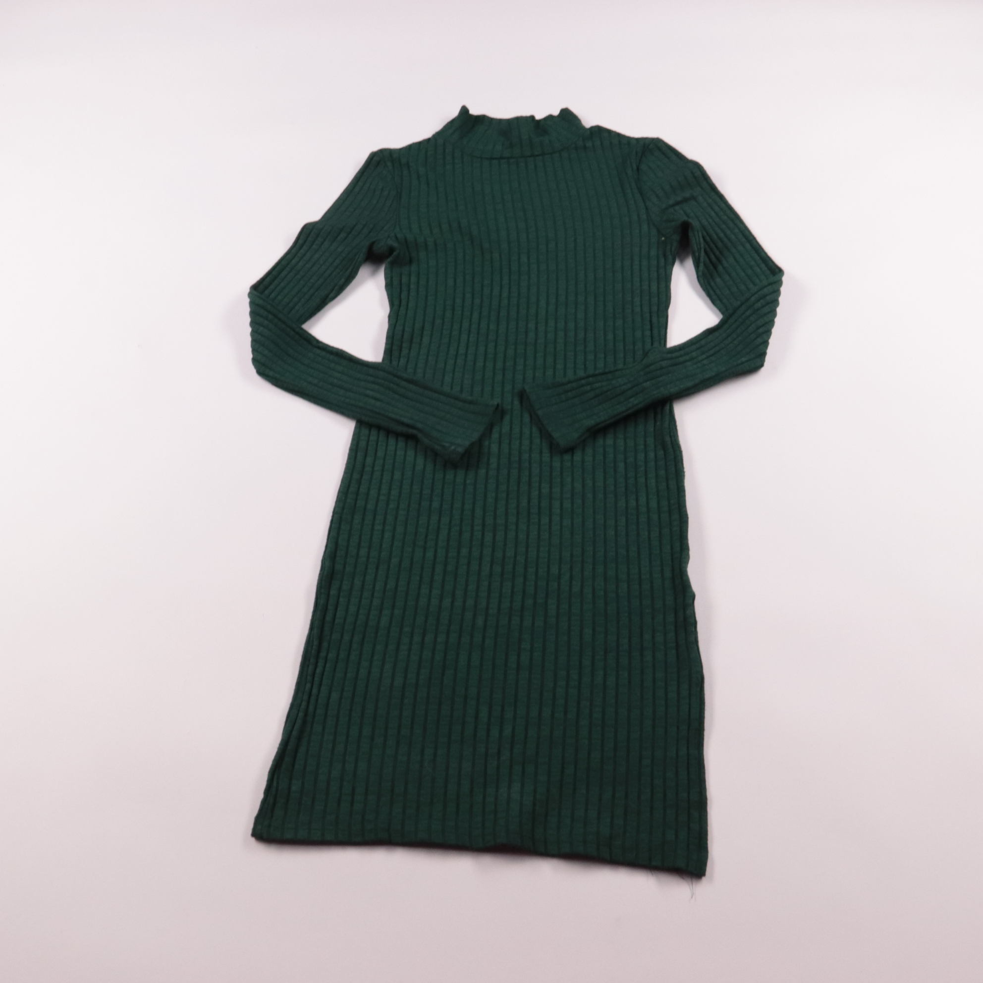 Повседневное платье Coolcat из трикотажа в рубчик, тёмно-зелёного цвета, с длинным рукавом и высоким воротником. Подойдёт на каждый день и для офиса в прохладную погоду, хорошо смотрится с ботинками или кедами. Материал тянется и комфортно садится по ф...