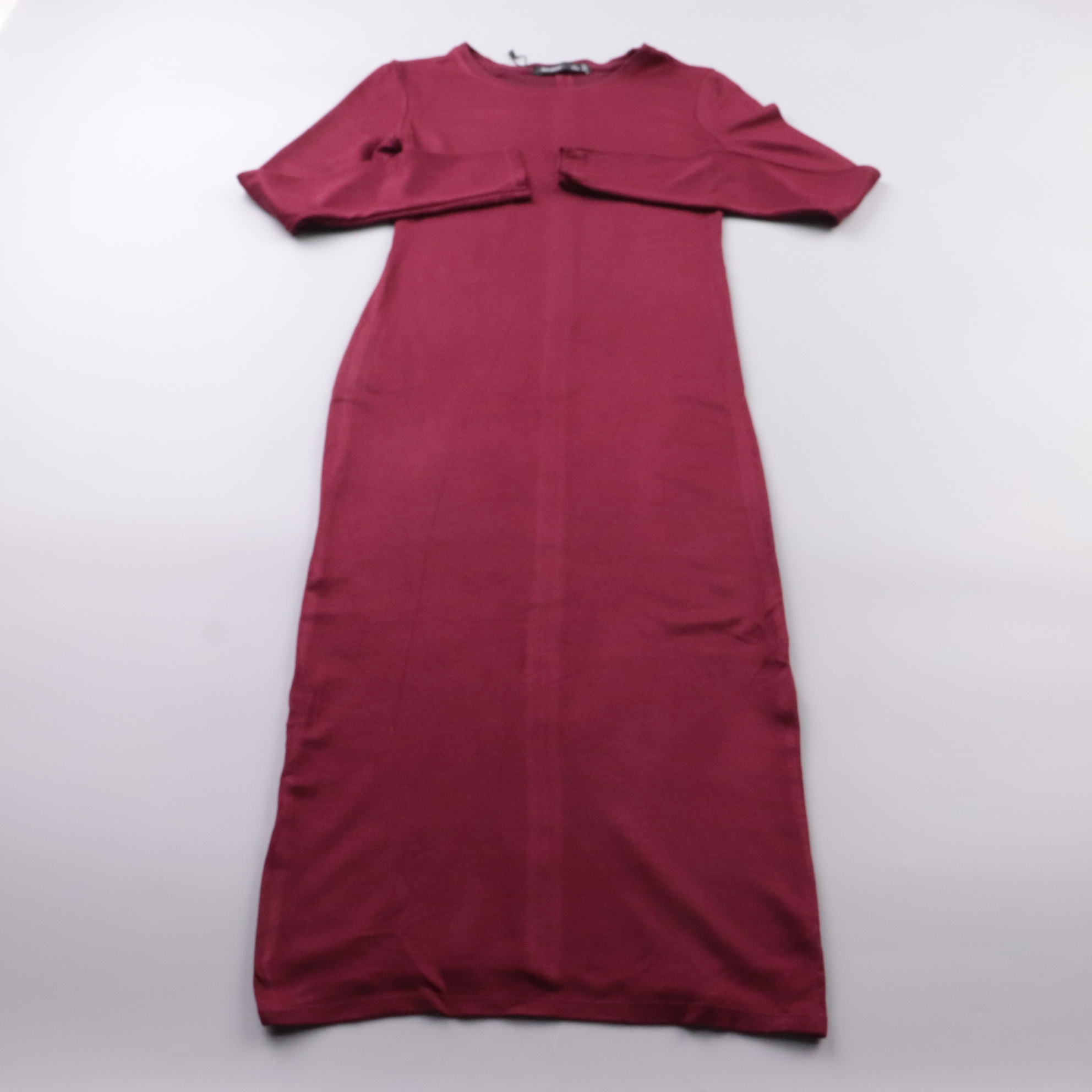 Повседневное платье Bershka бордового цвета прямого кроя с рукавом 3/4. Подойдёт для офиса, учёбы и прогулок, легко сочетается с кедами или ботильонами. Практичный плюс — комфортный трикотаж и лаконичный дизайн, который удобно носить каждый день.