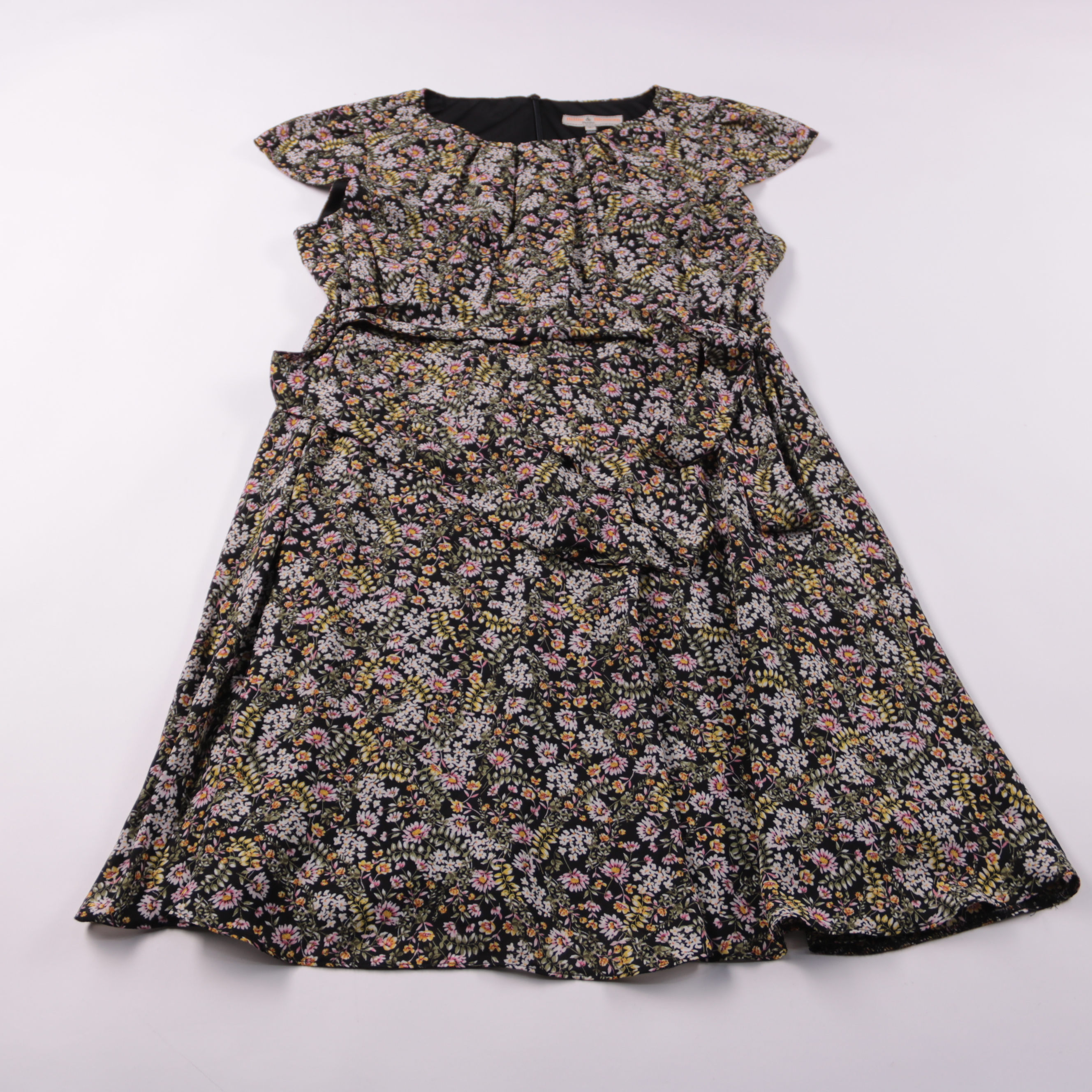 Повседневное платье Billie & Blossom с цветочным принтом на чёрном фоне и завышенной талией. Подойдёт для прогулок и повседневных выходов в тёплую погоду, легко сочетается с сандалиями или кедами. Практичный плюс — лёгкая ткань и простой уход.