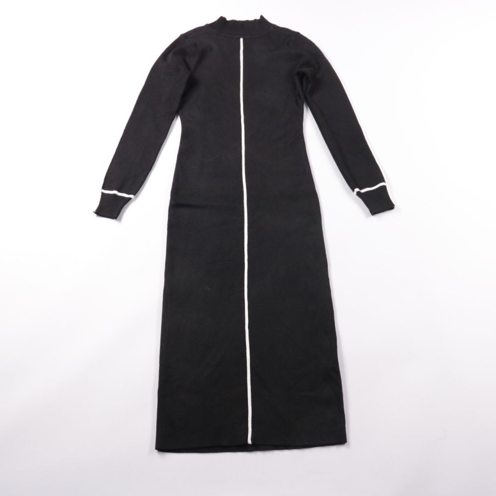 Платье Impression длины миди из трикотажа в рубчик, чёрного цвета с контрастной белой линией по центру и на манжетах. Подойдёт для повседневных образов и офиса, хорошо смотрится с ботильонами или кедами. Материал тянется и комфортно садится по фигуре, ...