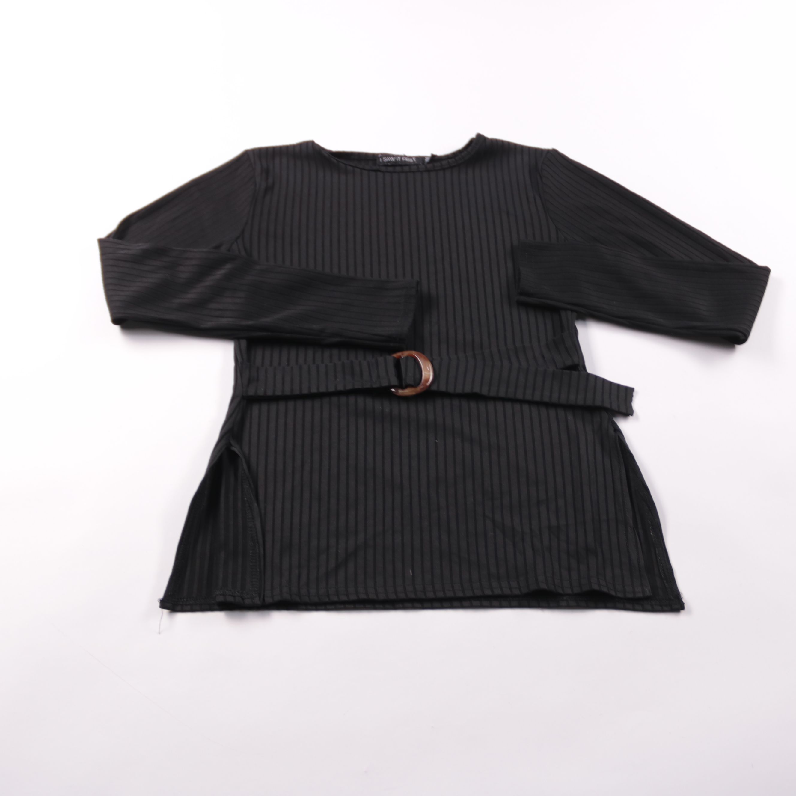 Женская блузка Saw It First из фактурного рубчика, чёрного цвета, с длинным рукавом и поясом с пряжкой. Подойдёт для офиса и повседневных выходов, хорошо смотрится с джинсами и юбками. Пояс помогает подчеркнуть талию и удобно регулируется по фигуре.