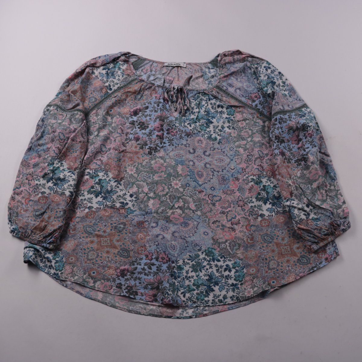 Блузка Just Jeans с цветочным принтом и завязками у горловины. Подойдёт для повседневных образов и офиса в сочетании с джинсами или юбкой. Лёгкая вискоза хорошо драпируется и комфортна в носке.