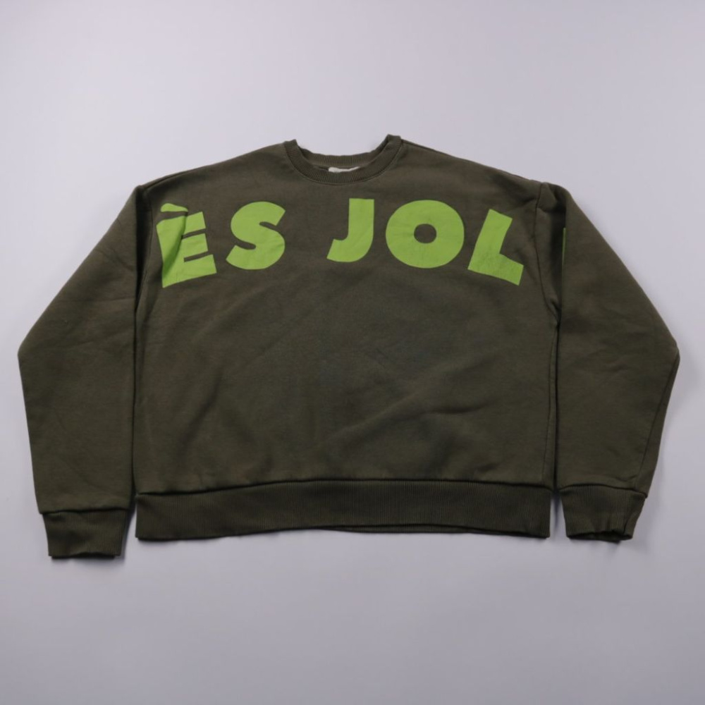 Свитшот My Jewellery цвета хаки с крупным зелёным принтом спереди, мягкий внутри. Подойдёт для повседневных образов и прогулок в прохладную погоду, хорошо сочетается с джинсами и спортивными брюками. Практичный плюс — органический хлопок и комфортная п...