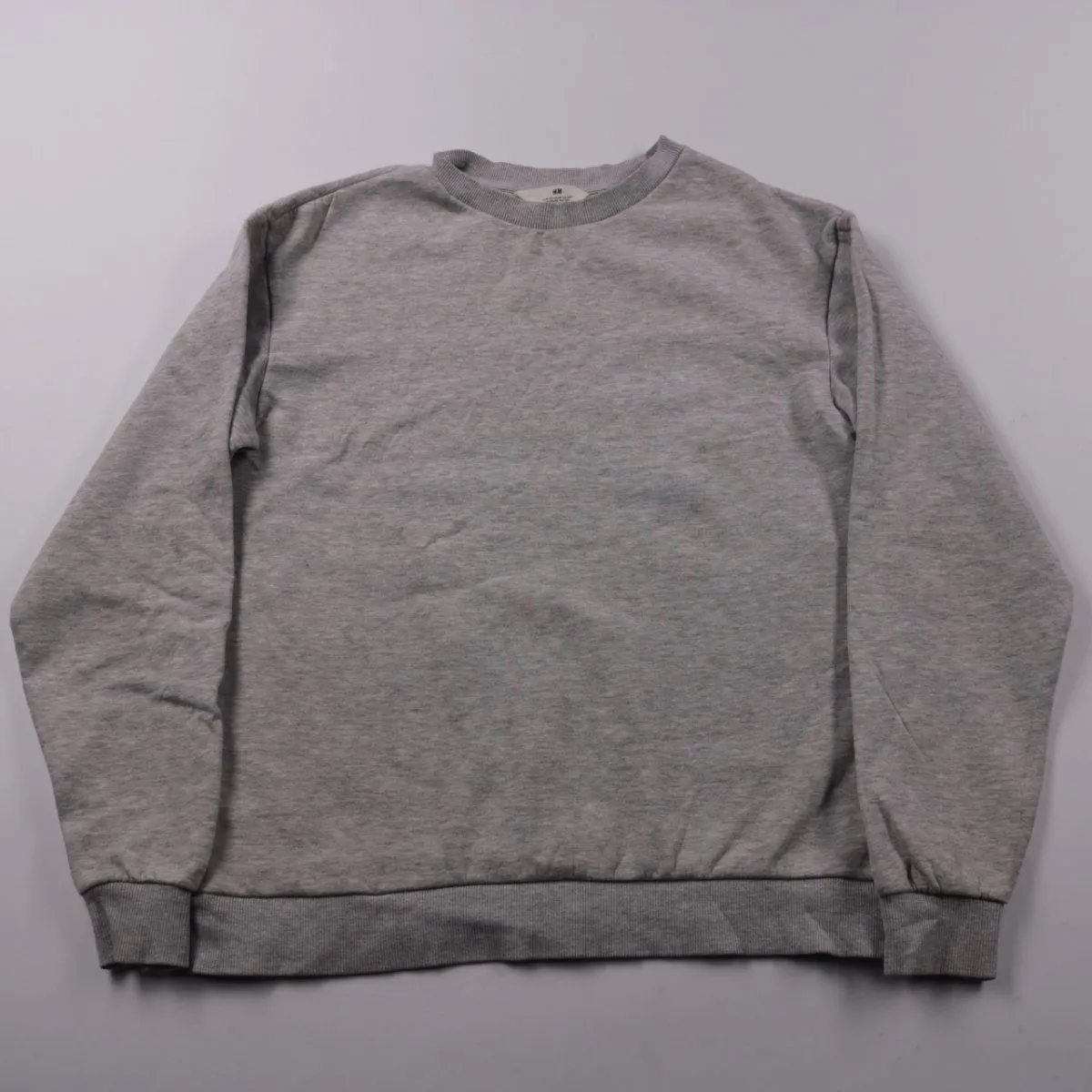 Свитшот H&M серого меланжевого цвета с круглым вырезом и манжетами. Подойдёт для повседневной носки и прогулок, легко сочетается с джинсами и спортивными брюками. Трикотаж с хлопком в составе комфортный и простой в уходе.