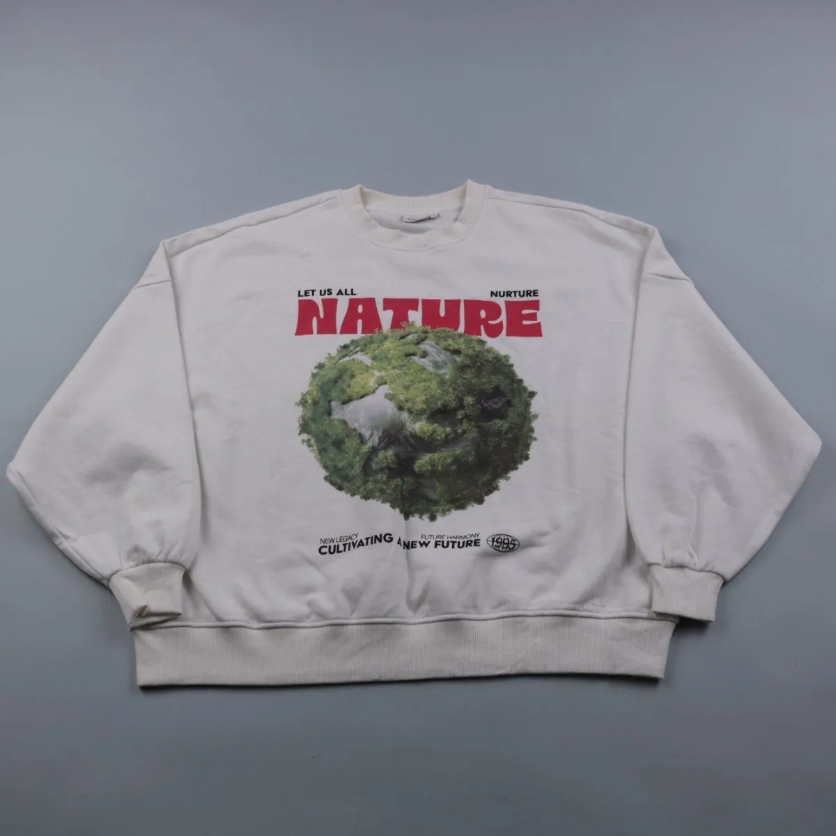 Женский свитшот Only молочного цвета с крупным принтом «NATURE» на груди. Подойдёт для повседневных образов и прохладной погоды в межсезонье. Хлопковая смесь практична в уходе и комфортна в носке.