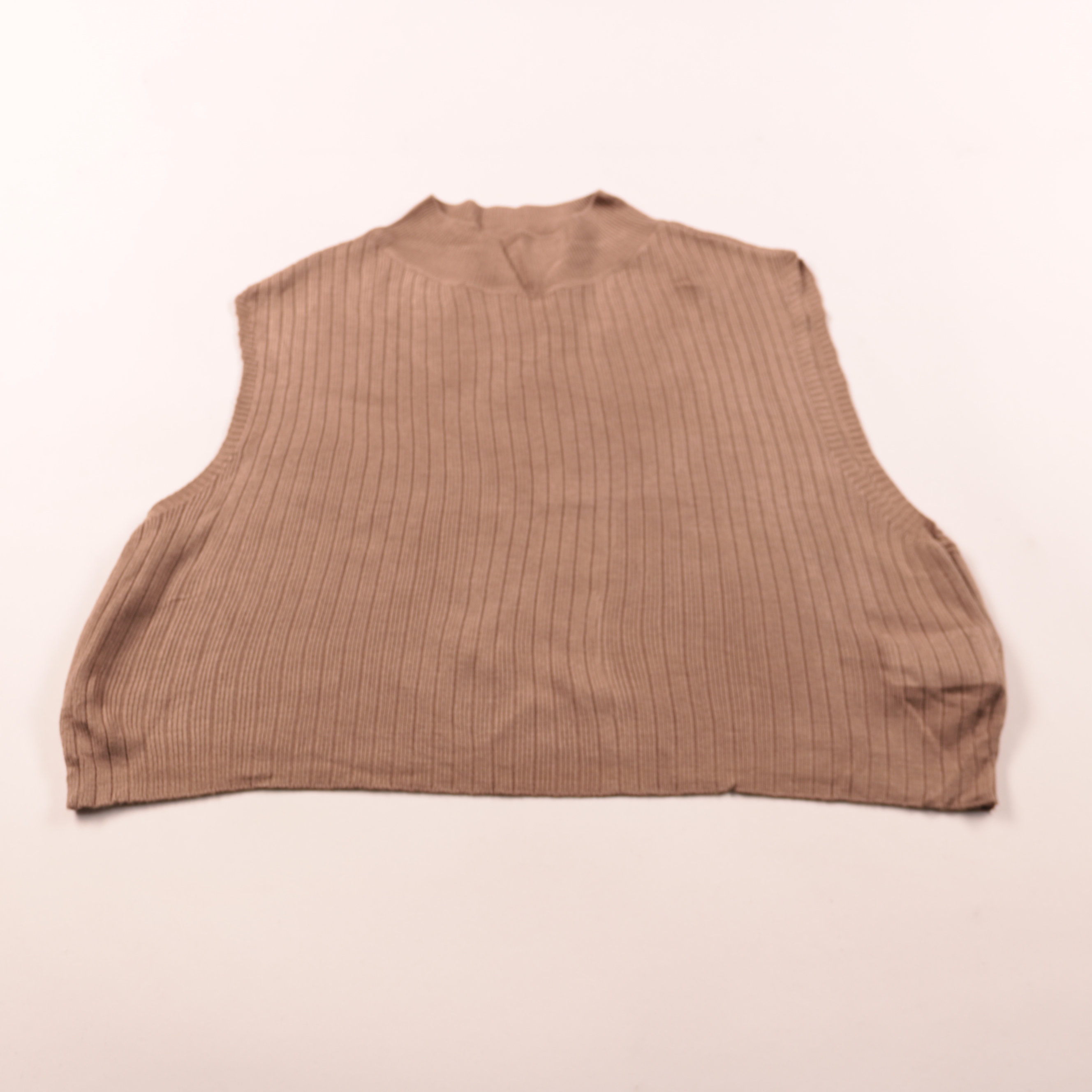 Трикотажный топ A lot less в рубчик, без рукавов, с небольшим воротником-стойкой и V-разрезом спереди. Подойдёт для повседневных образов и офисных сочетаний с жакетом, легко комбинируется с джинсами и юбками. Эластичная ткань хорошо тянется и комфортно...