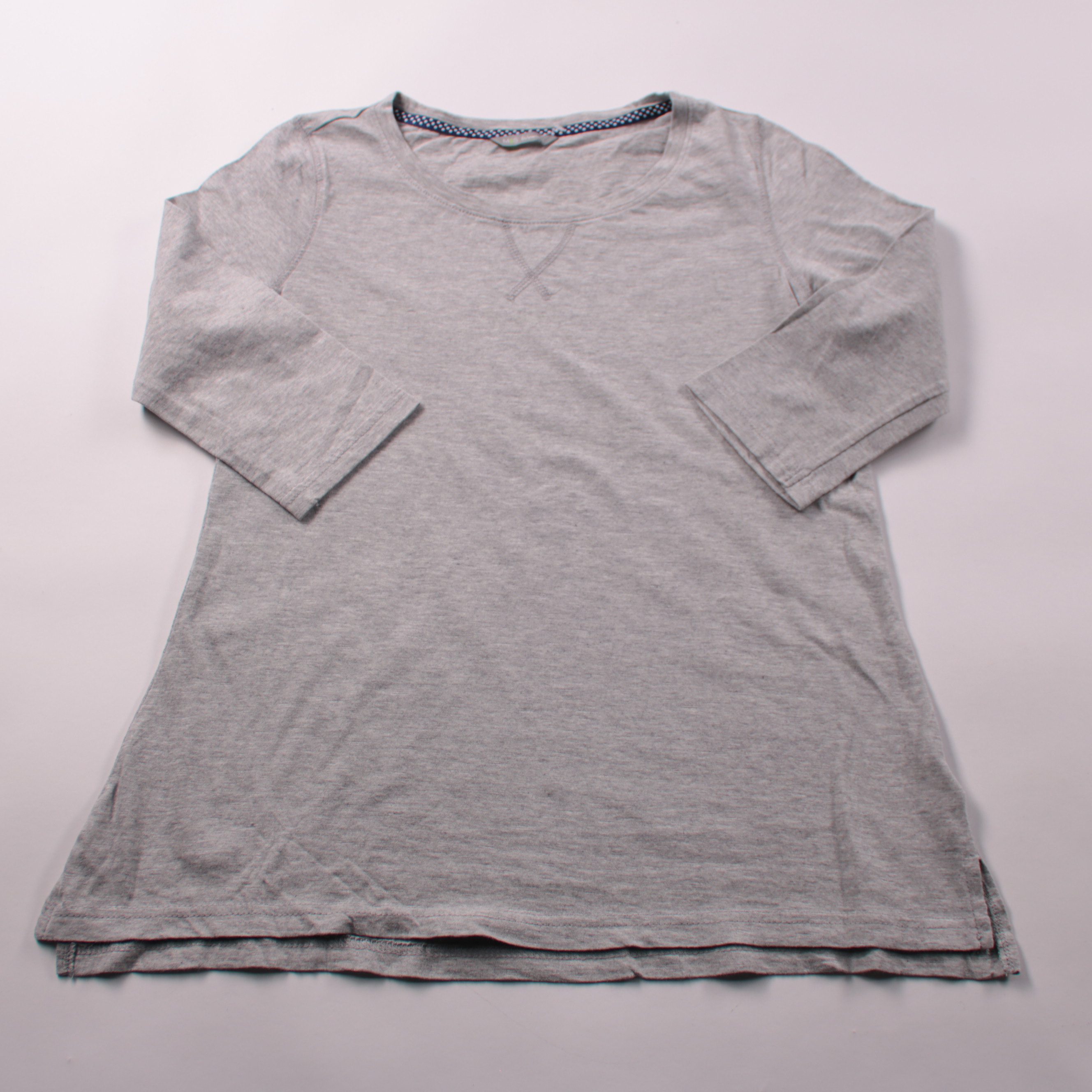 Женский лонгслив M&S Woman серого меланжевого цвета из хлопка, с круглым вырезом и рукавом 3/4. Подойдёт для повседневных образов и как базовый слой в прохладную погоду. Практичен тем, что легко сочетается с джинсами и юбками и комфортен в носке.