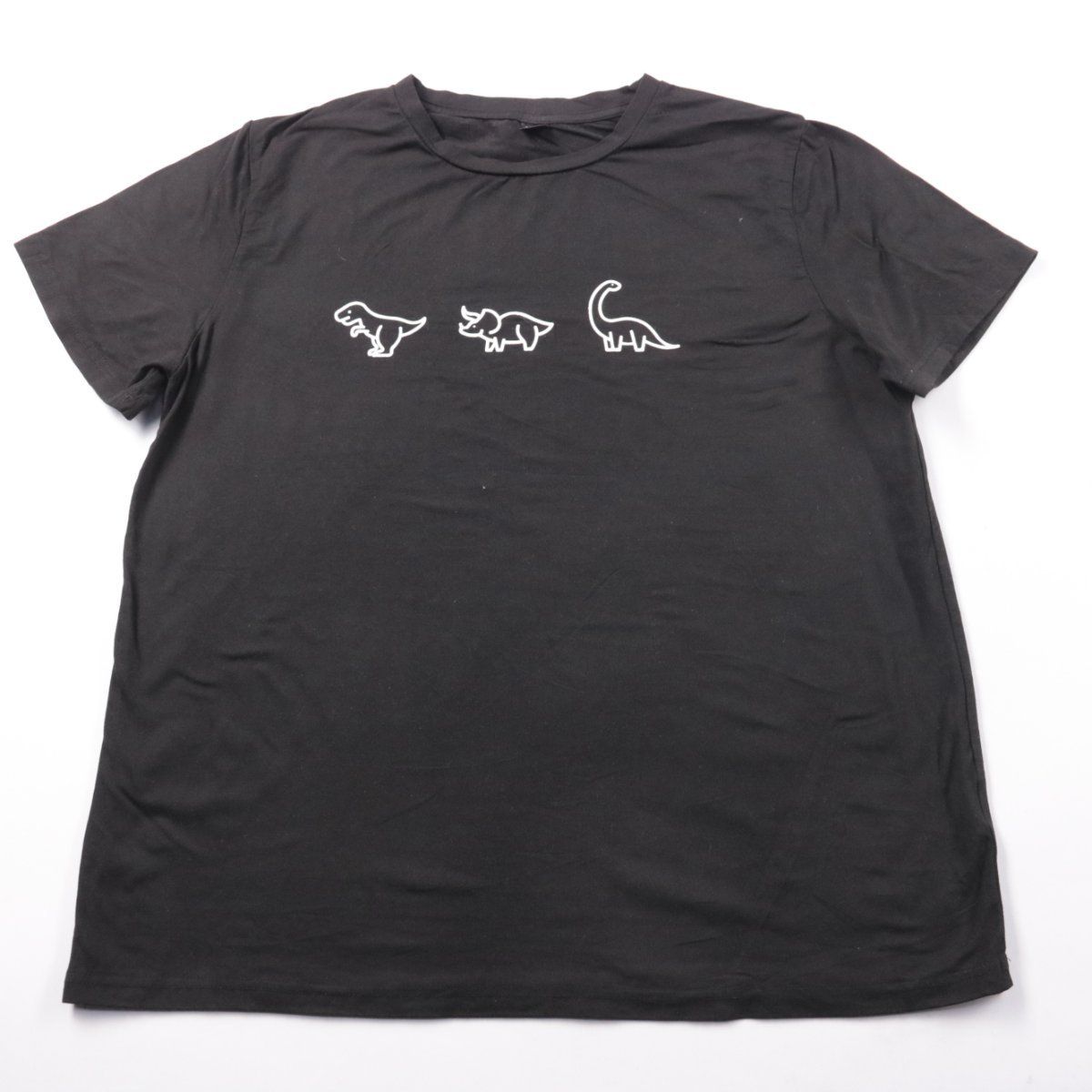 Женская чёрная футболка Shein Curve с небольшим принтом динозавров на груди. Подойдёт для повседневных образов и домашней носки, хорошо сочетается с джинсами и спортивными брюками. Ткань тянется за счёт эластана и комфортно садится по фигуре.