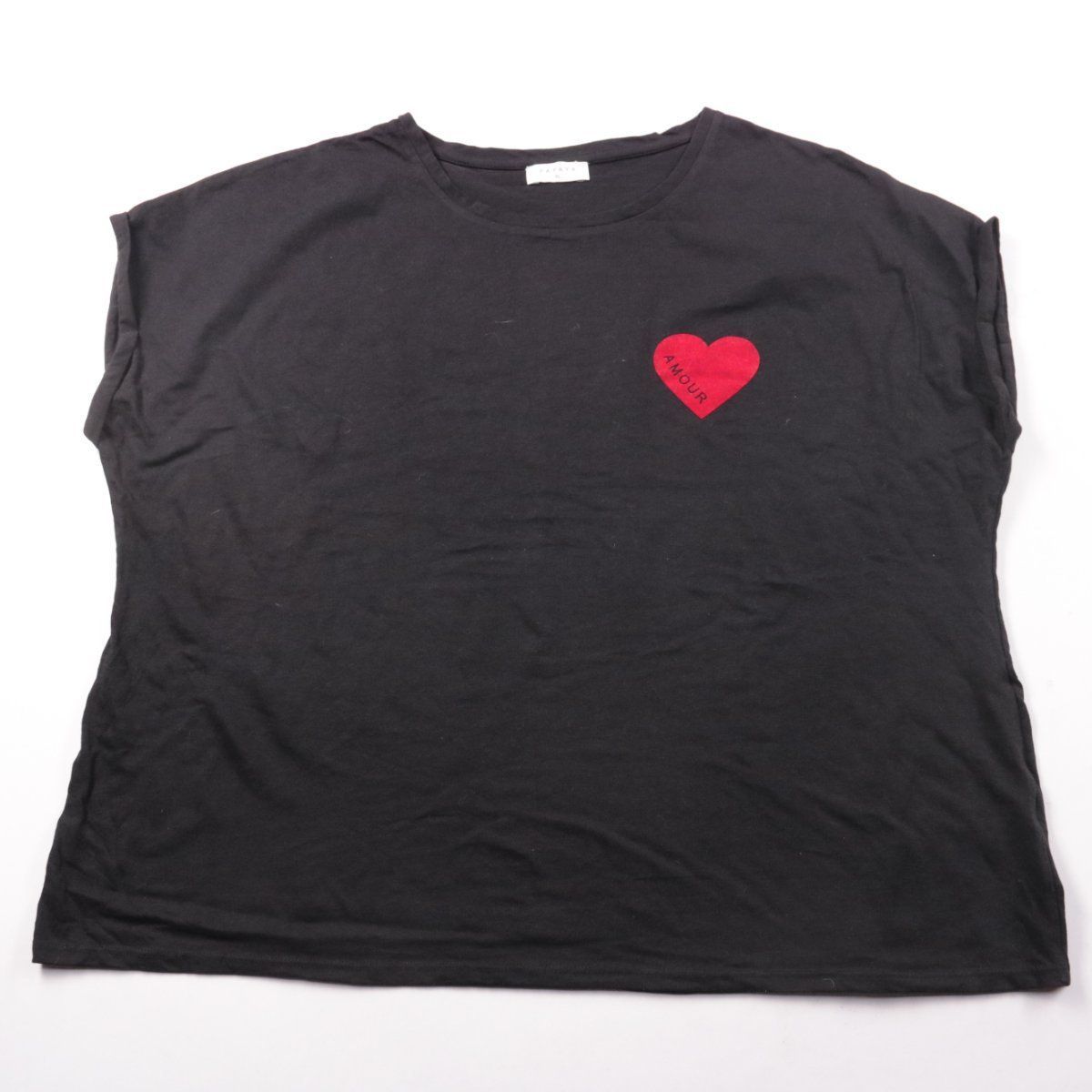 Женская футболка Papaya чёрного цвета с небольшим принтом в виде красного сердца на груди. Подойдёт для повседневных образов летом и как базовый слой под жакет или худи. Смесовая ткань (хлопок с полиэстером) проще в уходе и меньше мнётся.