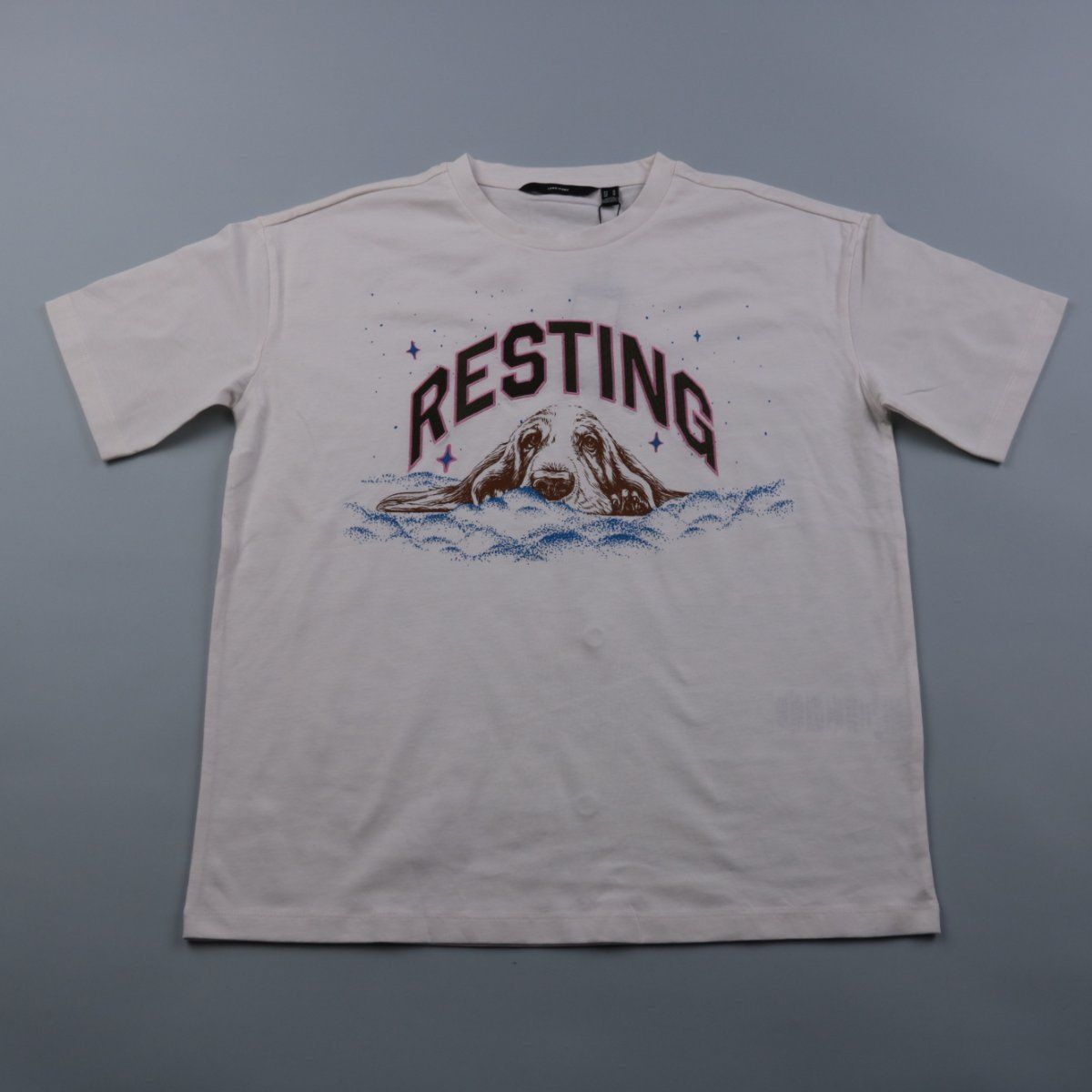 Женская футболка Vero Moda свободного (boxy) кроя, белого цвета с принтом и надписью «RESTING» на груди. Подойдёт для повседневных летних образов и домашнего отдыха. Натуральный органический хлопок приятен к телу и хорошо дышит.
