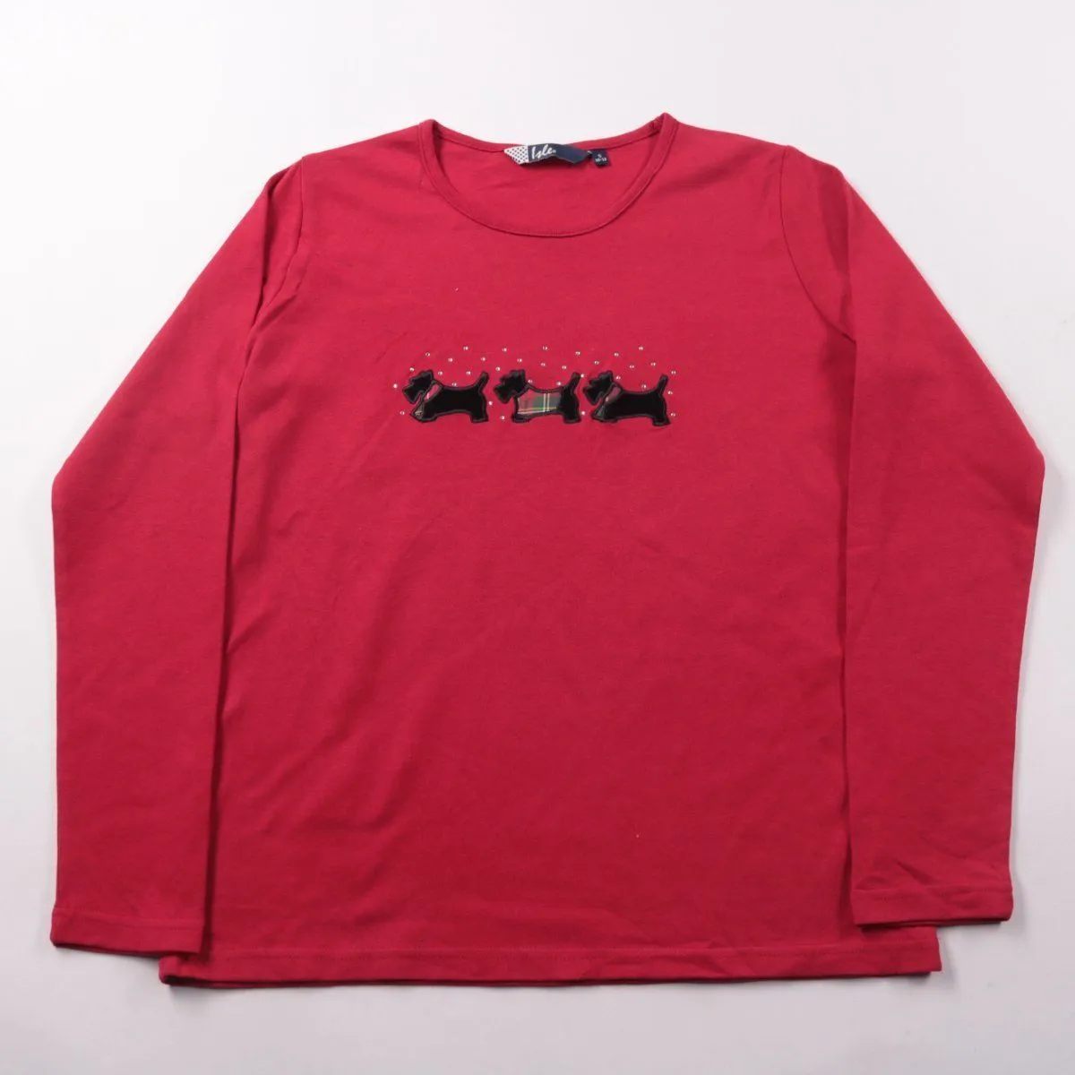 Детская футболка с длинным рукавом Iale красного цвета, спереди аппликация с собачками. Подойдёт для школы и прогулок в прохладную погоду. Натуральный хлопок приятный к телу и хорошо дышит.
