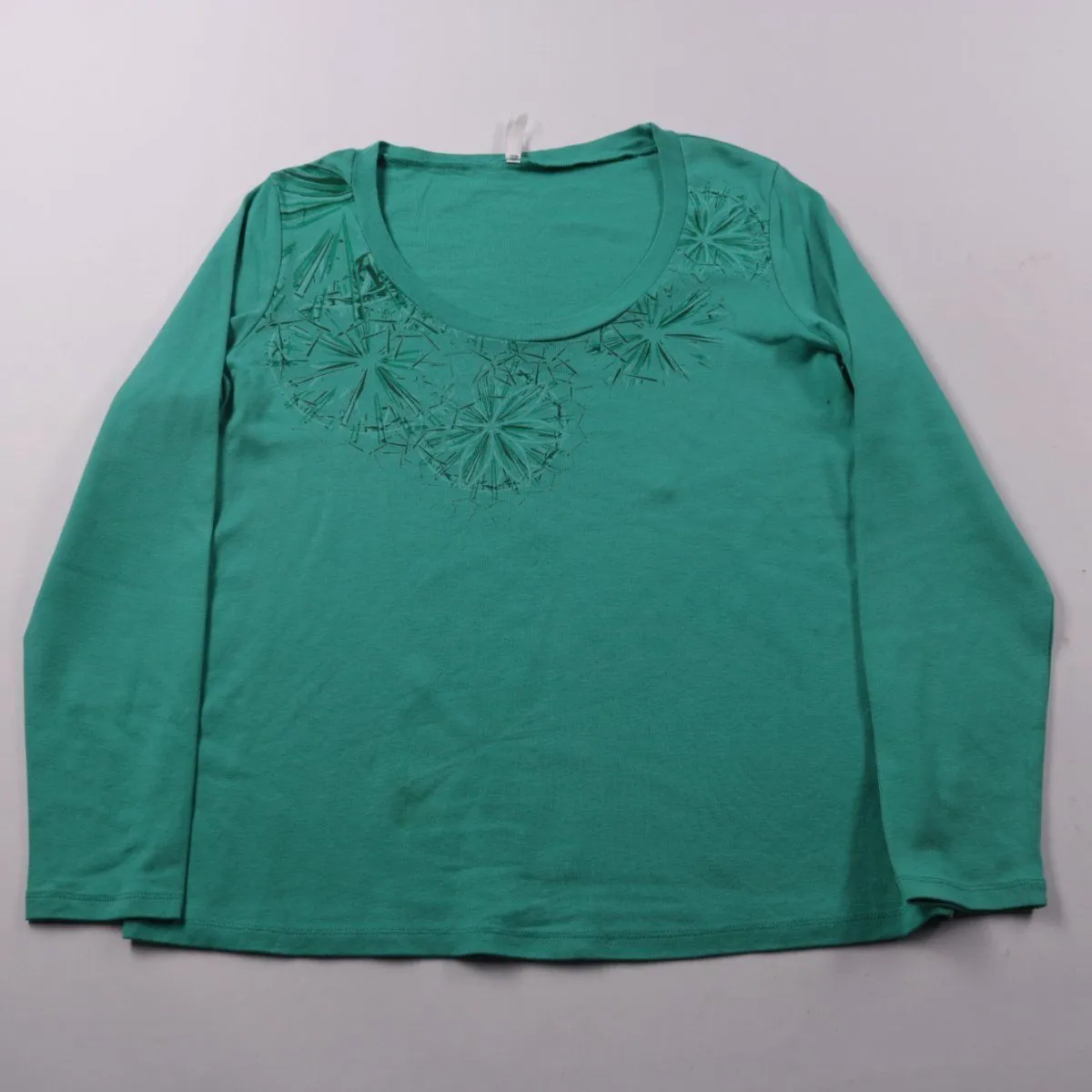 Женский лонгслив Marks & Spencer из хлопкового трикотажа, с округлым вырезом и длинным рукавом. Спереди декоративный принт по линии кокетки — подойдёт для повседневных образов в демисезон и прохладные летние вечера. Натуральный материал хорошо дышит и комфортен в носке.
