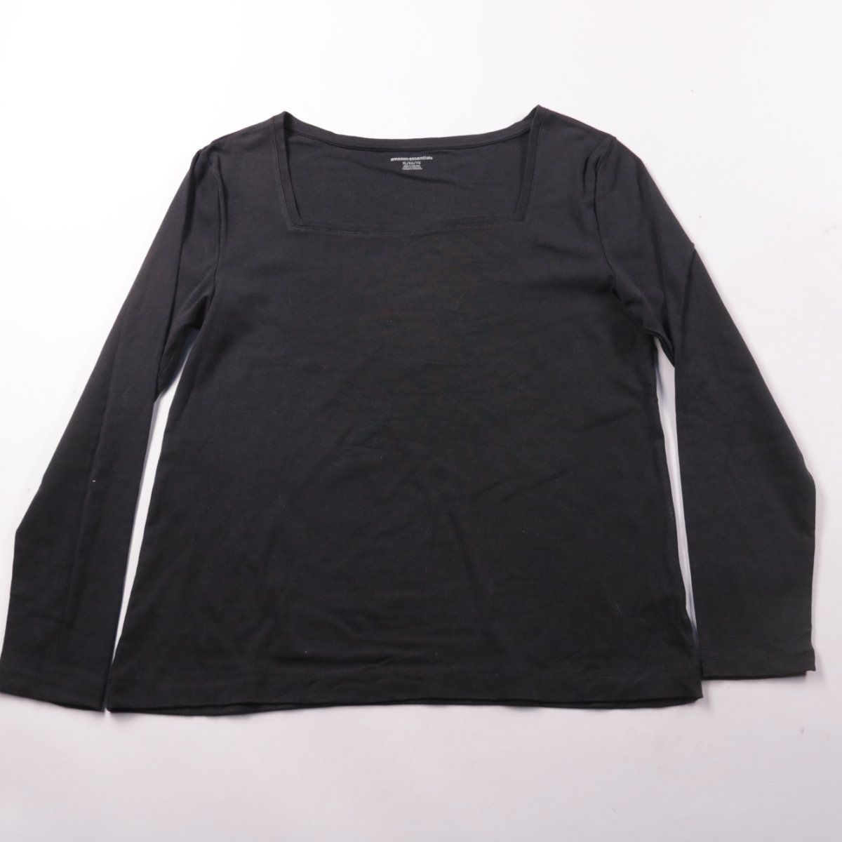 Чёрный лонгслив Amazon Essentials с квадратным вырезом. Подойдёт для повседневной носки и как базовый слой под жакет или кардиган. Ткань с добавлением эластана даёт комфортную посадку и немного тянется.