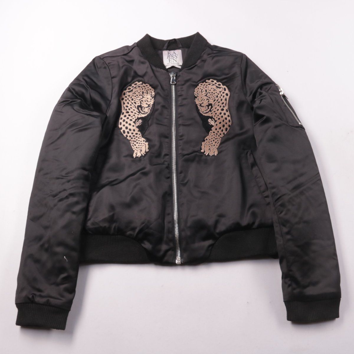 Бомбер Zoe Karssen чёрного цвета с вышивкой спереди и надписью на спинке, застёгивается на молнию. Подойдёт для повседневных образов в демисезон, удобно носить с джинсами и кроссовками. Практичный плюс — лёгкая синтетическая ткань и эластичные манжеты хорошо держат форму.