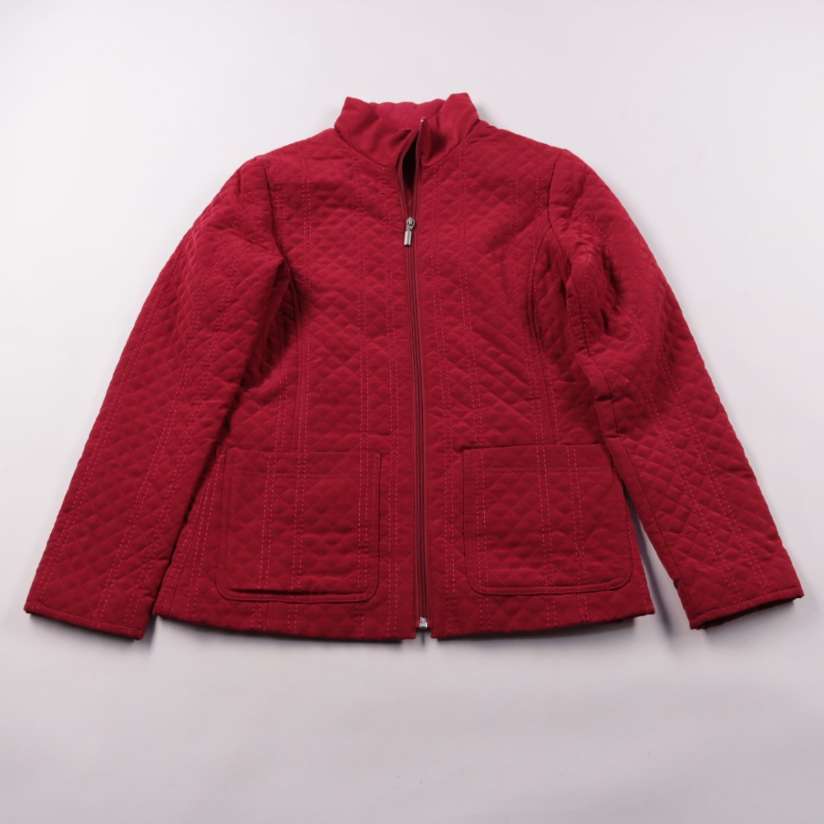 Стёганая женская куртка на молнии с высоким воротником и накладными карманами. Подойдёт для прохладной погоды весной и осенью, легко сочетается с джинсами и брюками. Практична тем, что простёгивает ткань и держит форму, а карманы удобны для мелочей.