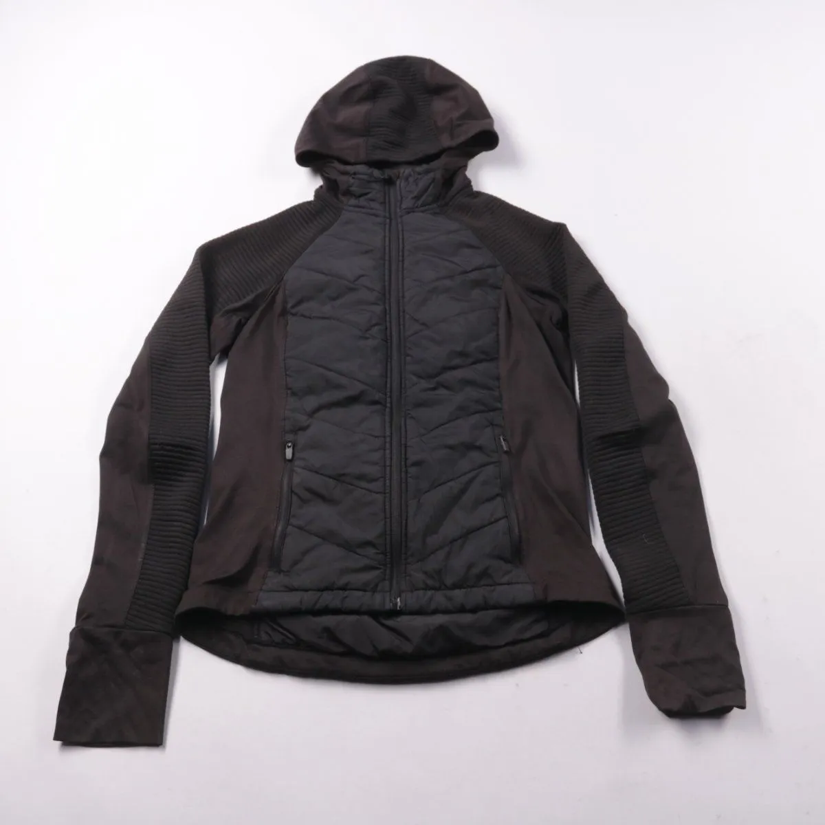 Демисезонная куртка с капюшоном на молнии, со стёганой передней частью и боковыми карманами. Подойдёт для прохладной погоды и активных прогулок благодаря эластичным вставкам и удобной посадке. Практичный плюс — лёгкая и быстро сохнет.