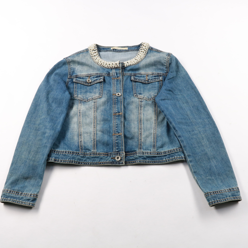 Джинсовая куртка Goodies голубого цвета с декоративной отделкой бусинами по горловине. Подойдёт для повседневных образов в тёплую весну/осень и прохладным летом. Плотный деним со стрейчем комфортно садится по фигуре и не сковывает движения.