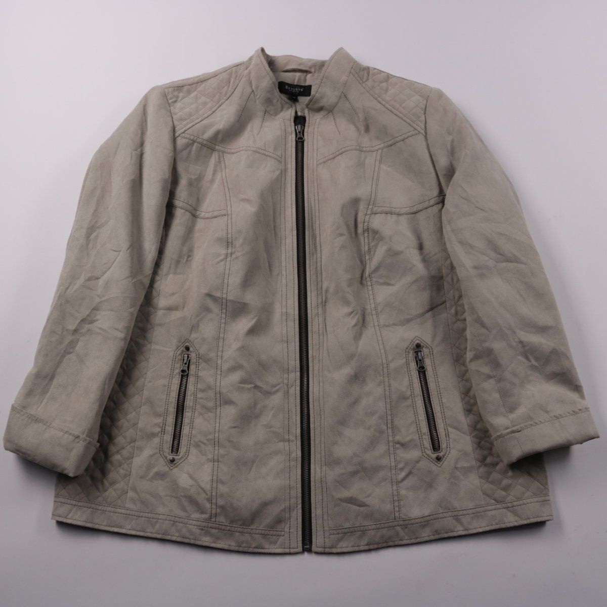 Женская куртка Bexleys светло-серого цвета с воротником-стойкой и застёжкой на молнию, по бокам карманы на молниях. Подойдёт для повседневной носки весной и осенью, удобно сочетать с джинсами и обувью на низком ходу. Практичный плюс — лёгкий материал и простота ухода благодаря полиэстеру.