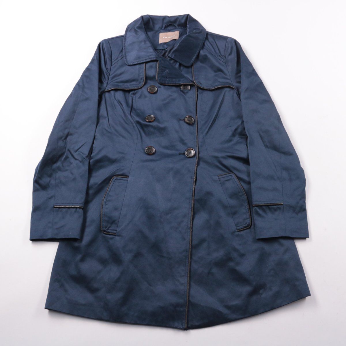 Двубортный плащ Orsay в тёмно-синем цвете с классическим воротником и накладными карманами. Подойдёт для прохладной весны и осени, легко сочетается с деловым и повседневным гардеробом. Практичный материал прост в уходе и хорошо держит форму.