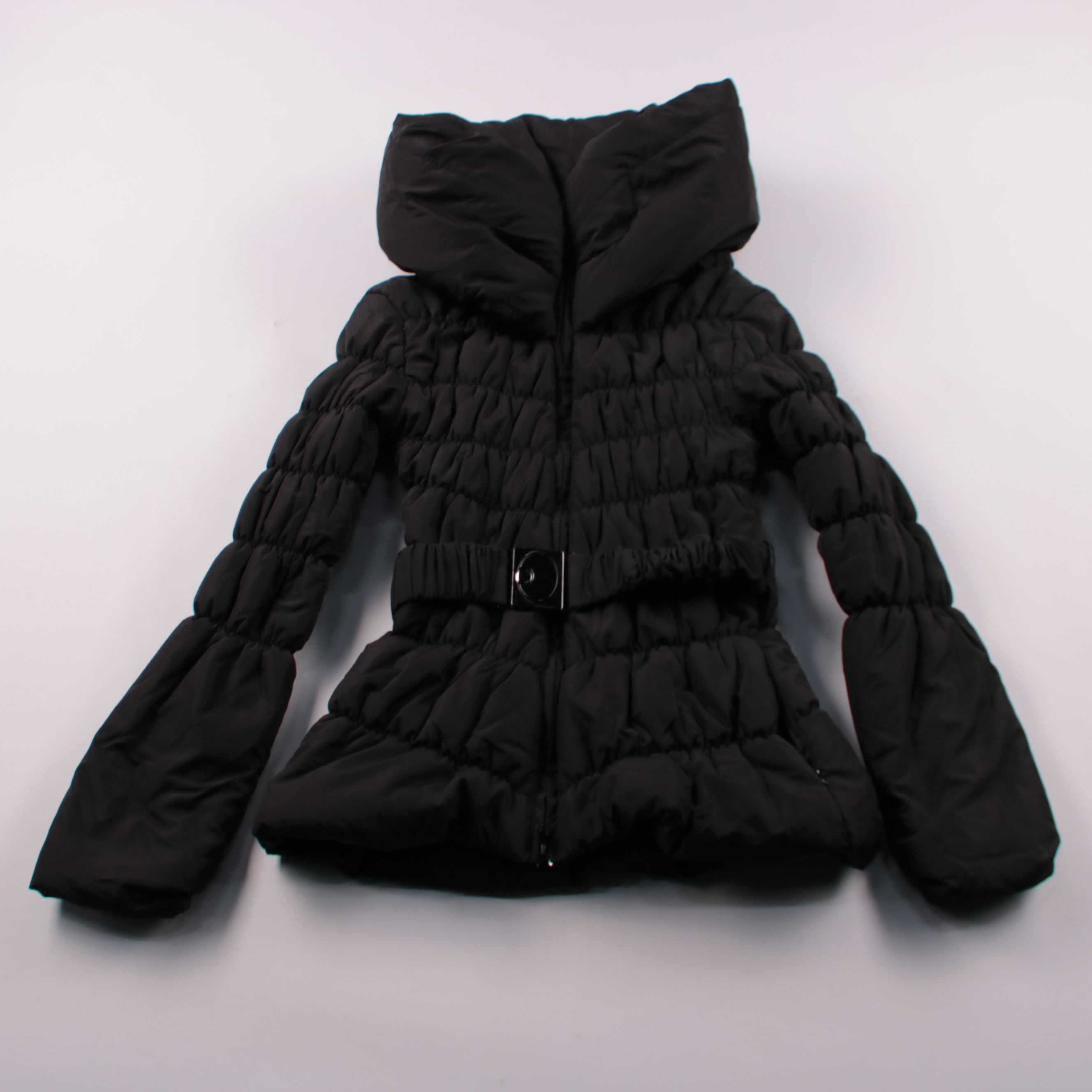 Женская стёганая куртка с объёмным воротником-капюшоном и поясом на талии. Подойдёт для зимних прогулок и повседневной носки в городе. Плотный утеплённый материал хорошо держит тепло и защищает от ветра.
