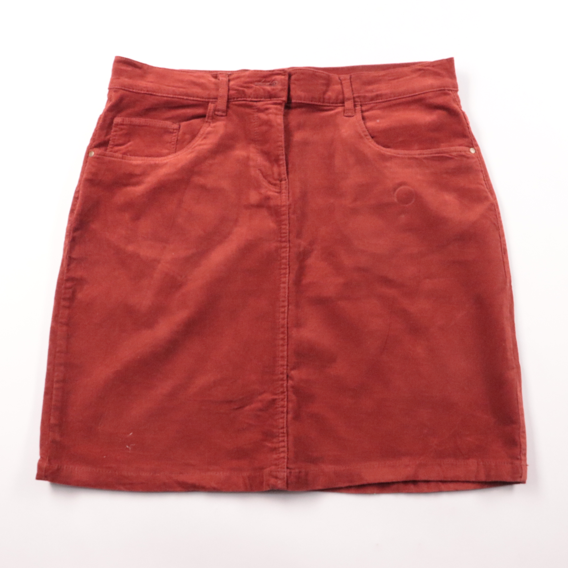 Юбка Up2Fashion из вельвета кирпично-красного оттенка, прямого кроя с высокой посадкой и карманами. Подойдёт для повседневных образов и офиса с рубашкой/свитером в демисезон и прохладное лето. Плотная ткань держит форму и комфортно тянется за счёт элас...