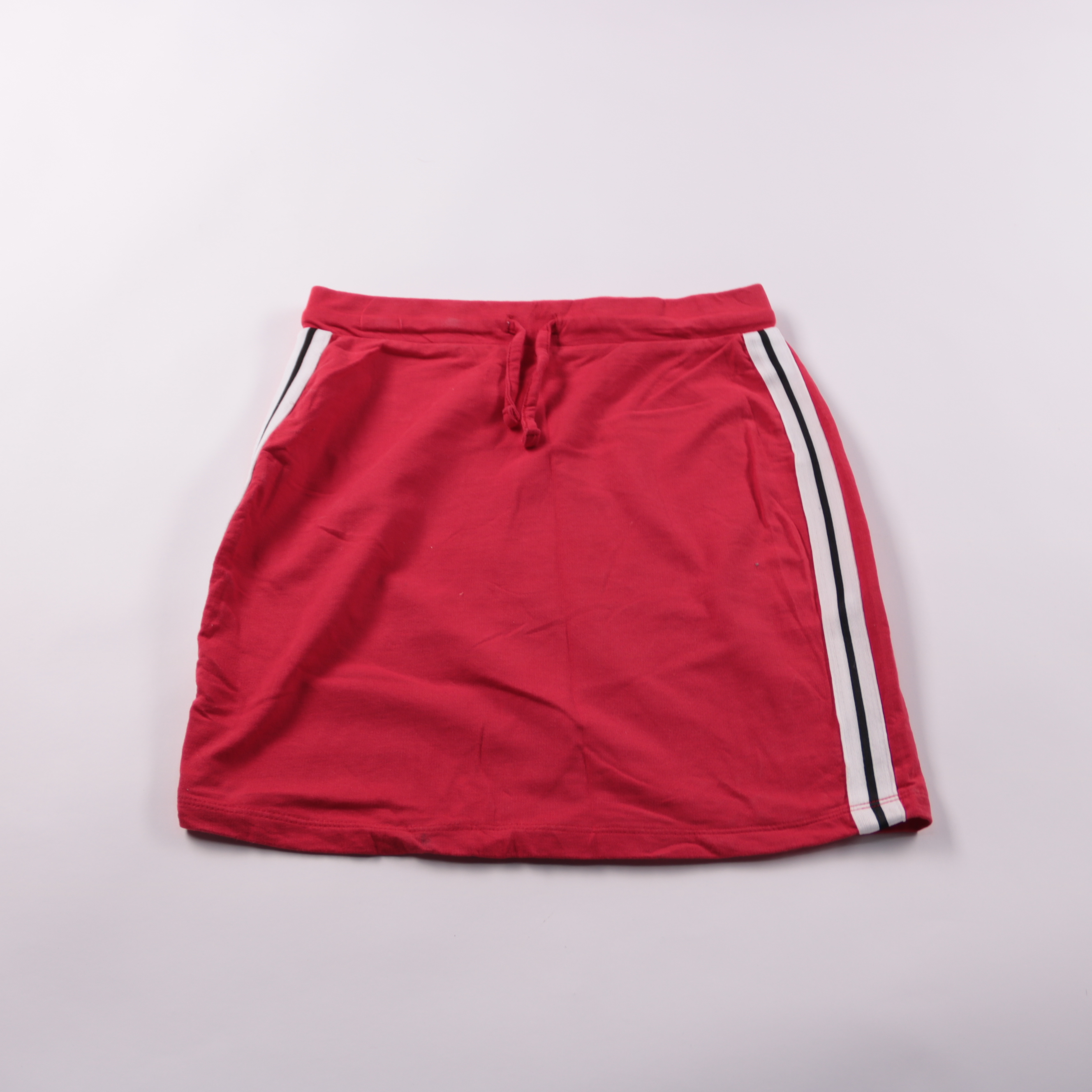 Юбка Spirit красного цвета в спортивном стиле, с кулиской на талии и контрастными полосами по бокам. Подойдёт для прогулок, отдыха и повседневных летних образов с футболками и кедами. Эластичный пояс на шнурке помогает удобно регулировать посадку.