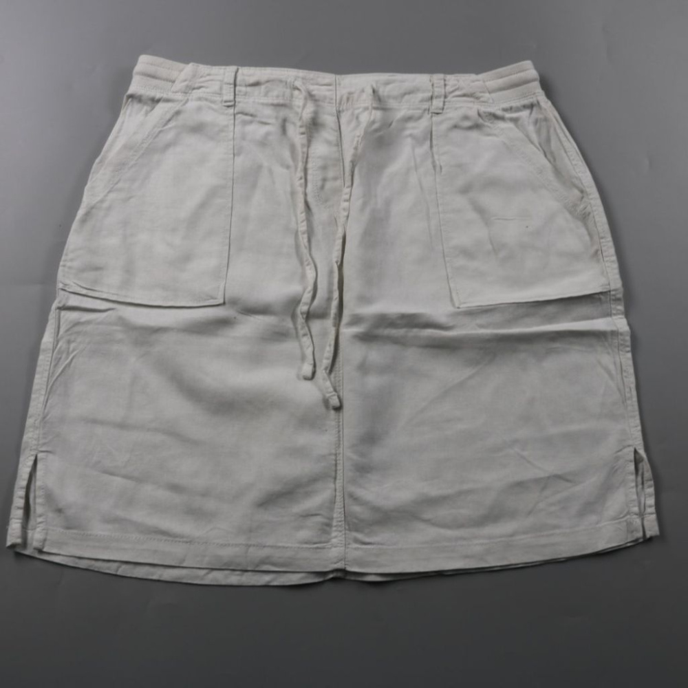 Юбка M&S Collection светло-белого (soft white) цвета, прямого кроя с кулиской на поясе и большими накладными карманами. Подойдёт для летних прогулок и поездок, легко сочетается с футболками и рубашками. Практичный плюс — натуральная льняная ткань прият...