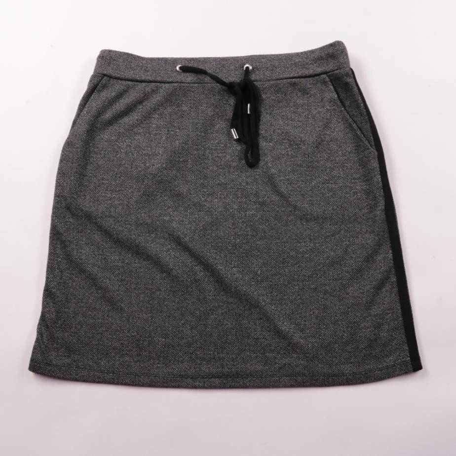 Юбка JBC тёмно-серого цвета с эластичным поясом на шнурке и боковыми карманами. Подойдёт для повседневных образов и поездок, хорошо сочетается с худи и кедами. Трикотажная ткань со стрейчем не сковывает движения и комфортна в носке.