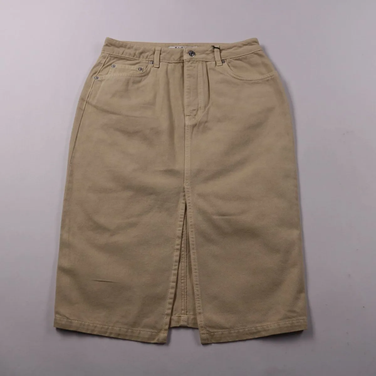 Юбка NA-KD из плотного хлопкового денима с разрезом спереди и длиной миди. Подойдёт для повседневных образов с футболками, рубашками и жакетами в тёплый сезон и в межсезонье. Практичный плюс — ткань хорошо держит форму и комфортна в носке.
